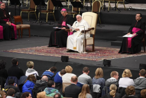 Ojciec Święty wskazał, że takie są „motywy naszej nadziei. Gdy wszystko wydaje się skończone i przychodzi pokusa, by powiedzieć, że nic nie ma już sensu, pojawia się wspaniała wiadomość: Bóg przychodzi dokonać czegoś nowego, ustanowić królestwo pokoju. Zło nie zatriumfuje na zawsze, istnieje kres cierpienia. Rozpacz została pokonana. Również my jesteśmy powołani, by stać się ludźmi nadziei”.
