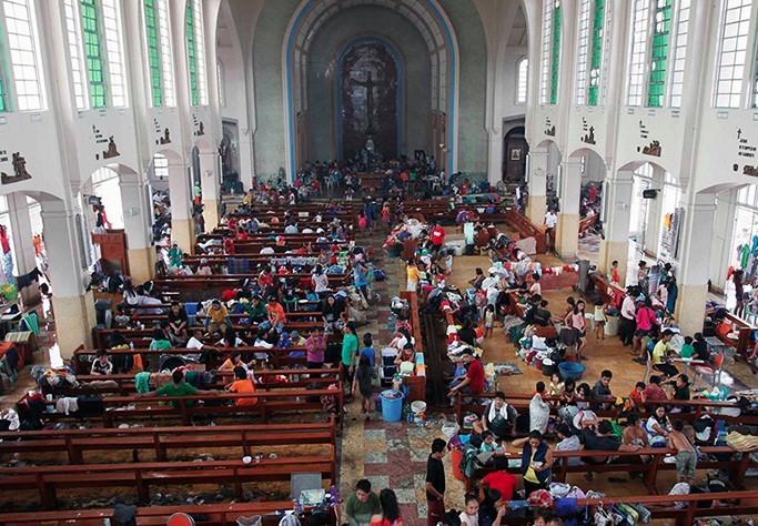 W mieście Tacloban mamy naszą Wspólnotę wraz z parafią i sanktuarium Matki Bożej Nieustającej Pomocy. Przez dwa dni nie mieliśmy łączności z naszymi Współbraćmi. Dopiero na trzeci dzień dowiedzieliśmy się, że ocaleli, podobnie jak nasi pracownicy. Dziękujemy za to Bogu, chociaż napełnieni jesteśmy bólem z powodu rodzin, które straciły swoich bliskich. Ponad 2000 osób, które mieszkały na naszym ogrodzonym terenie rozpierzchło się; w tej chwili żyją w różnych częściach naszej posiadłości i pilnie potrzebują żywności, wody i lekarstw. Poza Tacloban, inne nasze Wspólnoty nie ucierpiały. Pozwala to wspólnotom redemptorystów z całego kraju na organizowanie wstępnej pomocy, której staramy się udzielić Tacloban a także reszcie dotkniętych tajfunem obszarów.