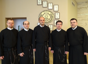 Od lewej: o. Paweł Drobot – Radny Nadzwyczajny, o. Dariusz Paszyński – Wikariusz Prowincjała, o. Janusz Sok – Prowincjał, o. Janusz Urban – Radny Zwyczajny, o. Mieczyław Babraj – Radny Nadzwyczajny.