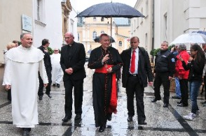 Sekretarzowi Stanu Stolicy Apostolskiej towarzyszyli hierarchowie: abp Celestino Migliore, Nuncjusz Apostolski w Polsce i kard. Kazimierz Nycz, metropolita warszawski.