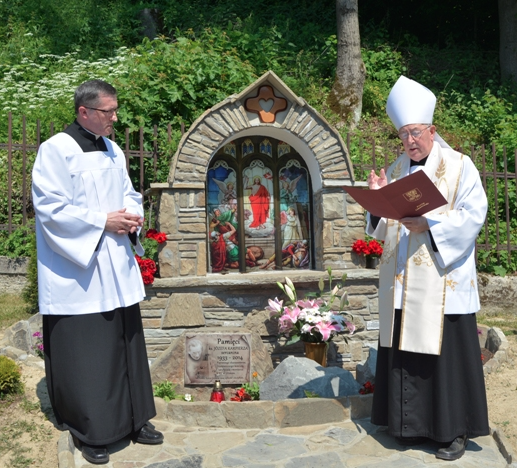 – Dzisiaj, zebrani na cmentarzu, pragniemy utrwalić w tym obelisku naszą pamięć o kapłanie, który pochodził z tej miejscowości, tutaj duszpasterzował, budował kościół i założył cmentarz – powiedział ks. infułat Jan Dyduch z Krakowa, który zarazem przewodniczył tego dnia uroczystościom odpustowym w Glisnem. Wszyscy w modlitwie polecali zmarłego w grudniu ubiegłego roku rodaka, pochowanego na cmentarzu sercanów w Stadnikach. Zapalono znicze, a dzieci szkolne położyły przez obeliskiem bukiet kwiatów.