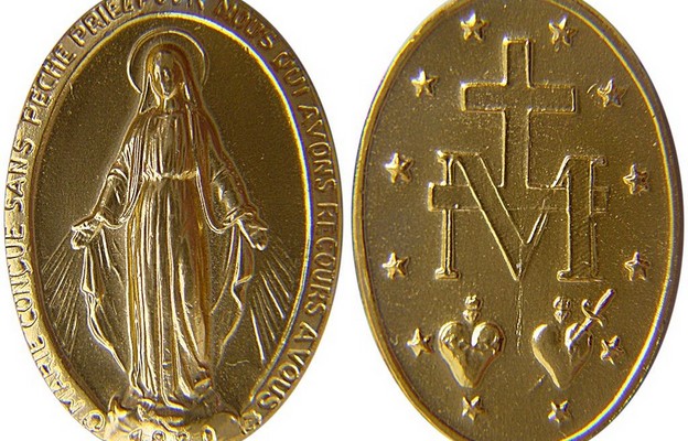 Gdy oglądałam to niebiańskie widzenie, Najświętsza Dziewica skierowała na mnie wzrok. Usłyszałam wówczas głos, który mówił: «Glob, który widzisz, przedstawia całą ziemię. Przedstawia też Francję. Nade wszystko zaś przedstawia każdego człowieka. Promienie oznaczają łaski, jakie zlewam na tych, którzy mnie proszą». (…) Wokół postaci Najświętszej Dziewicy dostrzegłam owalny obraz, na którym pojawiły się złote litery tworzące napis: «O Maryjo, bez grzechu poczęta, módl się za nami, którzy się do Ciebie uciekamy». Równocześnie usłyszałam głos: «Postaraj się, aby wybito medalik według tego wzoru; wszyscy, którzy będą go nosić, otrzymają wiele łask; wielkimi dobrodziejstwami będą obdarzani wszyscy noszący go z wiarą». Odniosłam wrażenie, że obraz, który widziałam, odwrócił się i zobaczyłam drugą stronę medalika. Po kilku dniach w czasie rozmyślania zastanawiałam się, jak właściwie powinna wyglądać ta druga strona medalika. Usłyszałam wtedy głos: «Litera M i dwa serca mówią wystarczająco dużo»” – napisała św. Katarzyna Labouré.