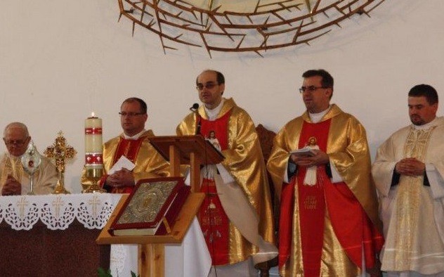 Okolicznościowe kazanie wygłosił o. Sylwester Cabała, przedstawiciel Prowincjała Redemptorystów z Polski. Kaznodzieja podkreślił, że wszystko zaczęło się wiosną 1993 roku od przybycia na tę ziemię o. Zbigniewa Kotlińskiego i o. Kazimierza Zymuły, którzy wcześniej pracowali na misjach w Boliwii i Brazylii. Trwająca już 20 lat posługa ewangelizacyjna redemptorystów wpisuje w realizację ich powołania misyjnego, które polega na pójściu za Jezusem Odkupicielem poprzez głoszenie słowa Bożego oraz tworzenie i rozwój wspólnot chrześcijańskich. W tym zadaniu wspiera ich moc Bożej łaski i przykład Jezusa, który sam wychodził ku ludziom i przyprowadzał ich do Ojca. On także dzisiaj poprzez misjonarzy wychodzi ku ludziom i zachęca do udzielenia osobistej odpowiedzi, która może się wyrażać w słowach umieszczonych na obrazie Bożego Miłosierdzia: „Jezu, ufam Tobie”.