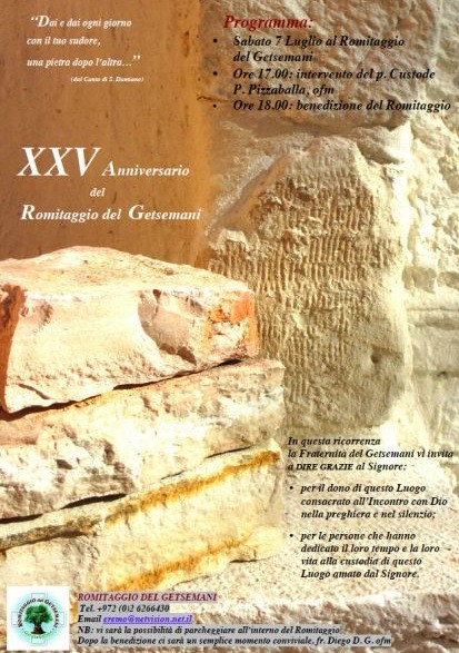 Zgodnie z tradycją naszego Zakonu erem miał być miejscem czasowego schronienia dla tych braci, którzy, po okresie pracy wśród trędowatych lub przy innych zajęciach, tęsknili za ciszą i kontemplacją, chcieli odrodzić się w Duchu. Erem „Getsemani” zlokalizowany jest tuż przy Bazylice Agonii Chrystusa, skąd rozpościera się wspaniały widok na Wzgórze Świątynne i górną część Doliny Cedronu, nazywaną w Biblii Doliną Jozafata. Przez kilkanaście lat z inicjatywy o. Giorgio Colombiniego OFM powstawały maleńkie cele-eremy. Pierwsza cela została poświęcona przez kustosza Ziemi Świętej Carlo Cechitelliego w święto Najświętszej Krwi Chrystusa 5 lipca 1978. Kolejnymi eremami były: bł. Fryderyk, św. Franciszek, św. Klara, Maryja Wniebowzięta, Eliasz, Matka Boża z Vetrany, Nazaret, św. Józef, św. Magdalena, św. Jan Chrzciciel. Do eremu oprócz braci, których pobyt opłacany jest przez wspólnotę kustodialną (zakonnicy w czasie przebywania w eremie mają się tylko modlić i wykonywać prace na terenie pustelni), przybywają chętni z całego świata. Szczególną duchowością tego eremu jest trwanie z Chrystusem na modlitwie w Ogrójcu. Strona internetowa eremu — link.