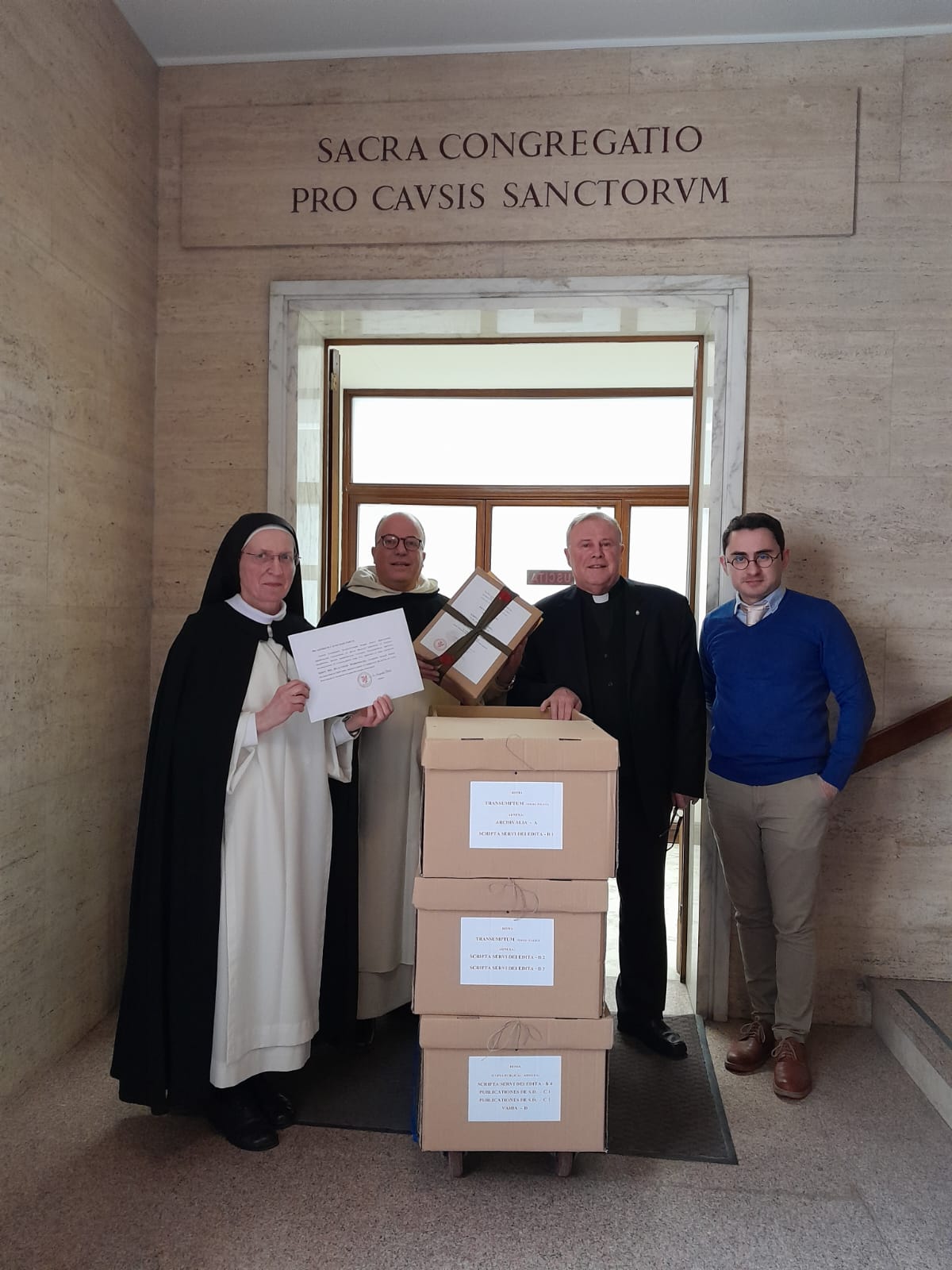 Przekazaniu akt towarzyszył o. Massimo Mancini OP, postulator generalny Zakonu Kaznodziejskiego, obecny był nadto o. Szczepan Praśkiewicz OCD, promotor sprawiedliwości w procesie Sługi Bożego, obecnie relator Dykasterii.