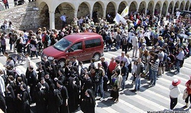 Nie dziwi więc, że Asyż przeżywa w dniach poprzedzających i następujących po kanonizacji autentyczne oblężenie osób, które są gotowe na przezwyciężenie wszelkich utrudnień, aby móc pomodlić się przy grobie św. Franciszka. Niedogodności było sporo, bo o ile franciszkanom w Sacro Convento udało się sprostać napływowi rzesz ludzkich dzięki sprawnej organizacji i pomocy dodatkowej ekipy braci z Polski, którzy przybyli tutaj z wszystkich trzech prowincji franciszkańskich, aby wspomagać miejscową wspólnotę w tym gorącym czasie, to innym nie zawsze się to udało. Szczególnie krytycznym był dzień 25 kwietnia, podczas którego całkowicie „zakorkowały” się okolice bazyliki św. Klary, uniemożliwiając nie tylko modlitwę przed krzyżem z San Damiano, ale ruch w całym centrum średniowiecznego miasta, które prawdopodobnie w całej swojej historii nie widziało takich tłumów ludzi za całego świata.