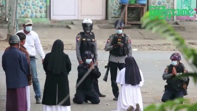 W ponad 50-milionowym społeczeństwie Birmy wspólnota katolicka liczy zaledwie 700 tys. wiernych, jednak aktywnie włącza się w dialog narodowy mający powstrzymać bratobójczy rozlew krwi. Angażują się w to biskupi, księża i siostry zakonne, którzy nie tylko prowadzą różańcową krucjatę modlitewną, ale i wychodzą przed kordon uzbrojonych żołnierzy, by z nimi mediować. Ikoną tego zaangażowania na rzecz pokoju stała się siostra Ann Nu Thawng, która klęcząc na ulicy powstrzymała atak na demonstrującą młodzież. Podobne sceny widać w tych dniach w wielu miastach. Emerytowany biskup Francis Daw Tang wyszedł przed uzbrojonych policjantów w mieście Myitkyina, błagając, by nie używali przemocy. W kościołach w całym kraju trwa modlitwa o pokój, a także w intencji zabitych i rannych. Ks. Celso Ba Shwe, który wraz z pastorem protestanckim na klęczkach próbował zatrzymać atak policji w miejscowości Loikaw, podkreśla, że trzeba uczynić wszystko, by Birma nie zmieniła się znów w morze krwi. Episkopat tego kraju wraz z Ekumeniczną Radą Kościołów zgłosili swą gotowość, by pomóc w mediacji na rzecz przywrócenia pokoju. Wskazali na pilną konieczność zainicjowania dialogu politycznego zarówno na szczeblu narodowym, jak i międzynarodowym.