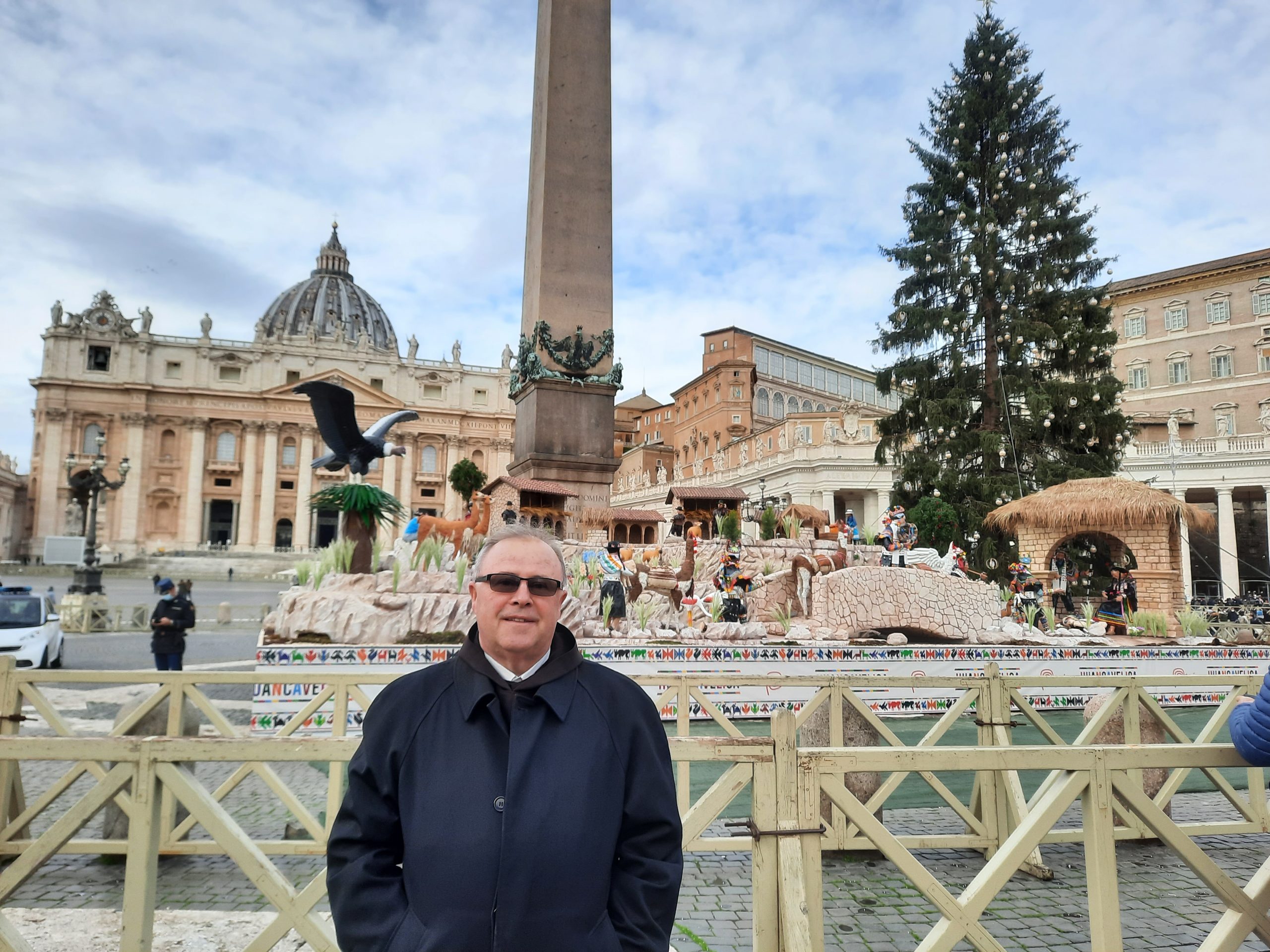 Na zdjęciu o. Szczepan T. Praśkiewicz OCD przy szopce na Placu św. Piotra.