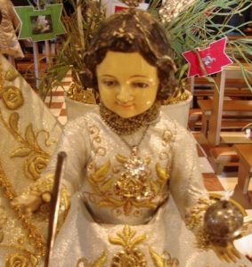Ołtarz zdobiła figura Matki Bożej z Manaoag (oryginalny tytuł hiszpański: Nuestra Señora del Santissimo Rosario de Manaoag) oraz tradycyjna figurka Dzieciątka Jezus (Santo Niño). Obecność figury Dzieciątka – niestety pod nieobecność filipińskich przyjaciół naszego klasztoru – przypominała filipińską uroczystość Dzieciątka Jezus (Fiesta Señor), przypadającą na trzecią niedzielę stycznia. Jako znak wielonarodowej obecności migrantów we Włoszech wnieśliśmy przed ołtarz także „drzewo narodów” -symbol wielu tożsamości narodowych (osób pochodzących z Filipin, Kongo, Nigerii, Birmy/Myanmar, Niemiec, Ukrainy, Rumunii i Polski). Afrykańskie siostry benedyktynki czynne przyniosły do ołtarza owoce ziemi Afryki: orzeszki ziemne, banany i kawę.