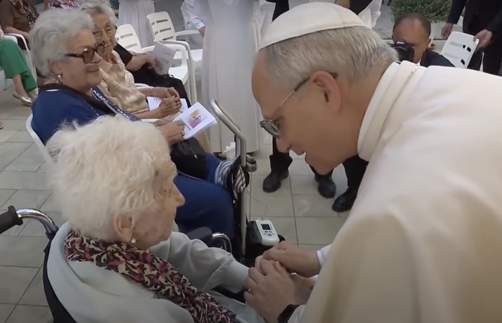 Leon XIV powitał indywidualnie około 20 starszych kobiet przebywających w placówce, wszystkie w wieku od 80 do 101 lat, i zatrzymał się, aby porozmawiać z nimi i z zakonnicami. Po powitaniu przez młodą pielęgniarkę i wspólnej modlitwie przy śpiewie, papież skierował do wszystkich kilka słów, podkreślając niektóre tematy pieśni i nawiązując do Ewangelii czytanej wczoraj podczas Mszy św.