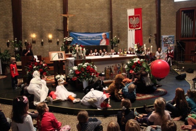 Wspólnota polskiej parafii w Amsterdamie świętowała w niedzielę 16 listopada 20-lecie szkoły prowadzonej przy tej parafii. Uroczysta dziękczynna Msza św. została odprawiona w Amsterdamie o godz. 12.00. Uroczystość uświetnili swą obecnością duchowni i świeccy, a wśród nich: ks. Edmund Druz TChr, Prowincjał chrystusowców, ks. Sławomir Trypuć TChr, były długoletni duszpasterz w Amsterdamie i założyciel szkoły oraz księża goście z Polski. Obecni byli także Pan Ambasador Rzeczypospolitej Polskiej Jan Borkowski z Hagi wraz z Małżonką, Pani Konsul Małgorzata Pacek, dzieci z naszej szkoły, absolwenci i ich rodzice, licznie zgromadzeni parafianie.