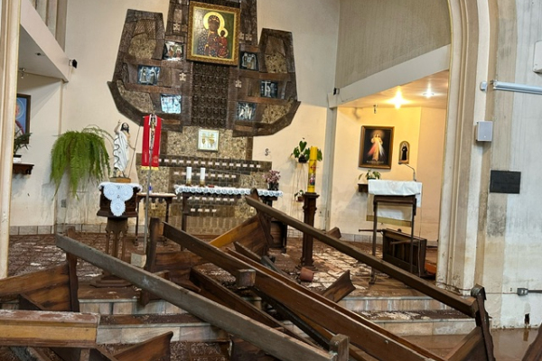 Przed naszą wspólnotą polonijną staje wyzwanie, aby przywrócić – ofiarną pracą i z pomocą dobrych i solidarnych ludzi – świątyni warunki do jej godnej misji nadprzyrodzonej! Zatem w poniedziałek 27 maja udaliśmy się z przedstawicielami Rady Kapelanii Polskiej Pani Jasnogórskiej w Porto Alegre, mieście doświadczanym od miesiąca skutkami powodzi! Ostatni raz byłem przed miesiącem w kościele, aby przenieść Najświętszy Sakrament na piętro do mojej biblioteki!