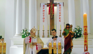 Biało-czerwono  i „majowo” było 29 kwietnia 2012 r. w katedrze pw. św. Aleksandra w Kijowie. W niedzielę Dobrego Pasterza celebrowano tutaj liturgię z okazji pierwszej rocznicy beatyfikacji Jana Pawła II oraz uroczystości NMP Królowej Polski. Do stołecznej świątyni przybyli z tej okazji: JE Ambasador RP na Ukrainie Henryk Litwin z Rodziną, przedstawiciele polskiego korpusu dyplomatycznego, działacze polonijni z Kijowa, Żytomierza, Białej Cerkwi i Różyna, pielgrzymi z Lubaczowa, działacze NSZZ „Solidarność” z Rzeszowa, grupa ministrantów z parafii chrystusowców w Poznaniu oraz niezwykle liczna grupa miejscowych katolików. Mszę świętą celebrował ordynariusz diecezji Kijowsko-Żytomierskiej ks. abp Piotr Malczuk wraz z kapłanami, którzy wraz z pielgrzymami przybyli z Polski. Ksiądz Arcybiskup wygłosił także homilię. Pod koniec Mszy Świętej głos zabrał Ambasador RP na Ukrainie Henryk Litwin.