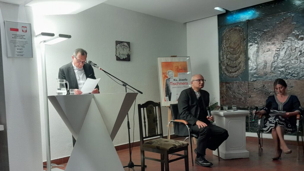 Wieczór został zatytułowany: „Człowiek na scenie życia w świetle Tischnerowskiej filozofii dramatu”. Gośćmi spotkania byli: prof. Robert Piłat, filozof związany z Instytutem Filozofii i Socjologii Polskiej Akademii Nauk oraz Uniwersytetem Kardynała Stefana Wyszyńskiego oraz aktor, Wojciech Wysocki, który prezentował wybrane fragmenty „Filozofii dramatu” ks. Tischnera. Uczestnicy spotkania rozważali transcendentalia czyli pojęcie Prawdy, Dobra i Piękna w ujęciu Tischnera, który pytał: „czy piękno odsłania przed nami prawdę świata, czy karmi nas swoim kłamstwem? Czy to, co jawi się dobre, jest dobre naprawdę, czy prawda jest prawdą także wtedy, gdy nas unieszczęśliwia?”. Prof. Piłat nawiązał do Tischnerowskiego pojęcia popękanego świata i człowieka, jako istoty pękniętej. To pęknięcie sprawia, że człowiek jest istotą dramatyczną. Filozofia Tischnera jest jednak filozofią nadziei. Według Tischnera, dramat otwiera możliwość tragedii, a istotę tragedii stanowi zwycięstwo zła nad dobrem, zło zamiast zginąć, triumfuje. Kiedy człowieka wybiera coraz większe zło przeciwko coraz większemu dobru, wpada w stan potępienia. To jednak nie dotyka go bez jego przyzwolenia. Tischner podkreśla, że człowiek, chociaż jest istotą słabą i często ponosi klęskę, może dokonywać powtórnych wyborów. „Tak krok po kroku, we wzlotach i upadkach rodzi się wierność. To ona otwiera drogę zbawienia” – czytamy w „Filozofii dramatu”. To jednak również nie dzieje się bez woli człowieka. „Szczęście przychodzi, gdy człowiek wybiera Dobro przeciwko złu, które go wciąga” – pisał Tischner.