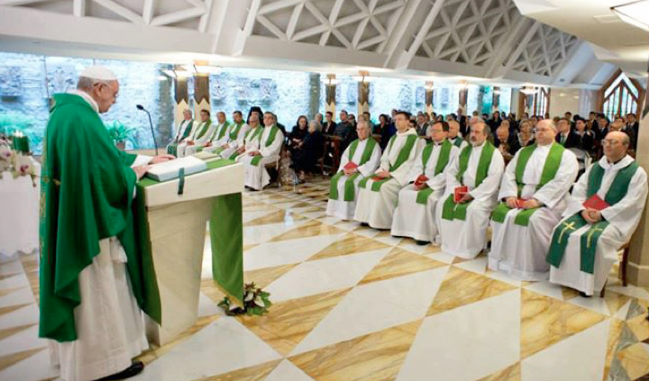 „Pocieszenie, które jest duchowym doświadczeniem, aby było pełne potrzebuje zawsze kogoś drugiego: nikt nie może pocieszyć się sam, nikt. A kto chce tak robić, kończy patrząc w lustro, patrzy w lustro, aby wybielić siebie samego, aby się pokazać. Pociesza się tymi rzeczami zamkniętymi, które nie pozwalają wzrastać, a powietrze, którym oddycha jest narcystyczne, autoreferencyjne. To jest pocieszenie na niby, które nie daje wzrostu. To nie jest pocieszenie ponieważ jest zamknięte, brakuje drugiego” – powiedział Papież.