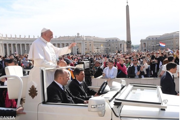 Drodzy bracia i siostry, dzień dobry! Dzisiaj pragnę omówić podróż apostolską do Egiptu, którą odbyłem w minionych dniach. Udałem się do tego kraju na poczwórne zaproszenie: Prezydenta Republiki, Jego Świątobliwości Patriarchy prawosławnych Koptów, Wielkiego Imama Al-Azhara i Patriarchy katolickiego obrządku koptyjskiego. Dziękuję każdemu z nich za przyjęcie, jakie mi zgotowali, naprawdę bardzo gorące. Dziękuję całemu narodowi egipskiemu za uczestnictwo i za serdeczne przeżywanie tej wizyty Następcy Świętego Piotra. Prezydent i władze świeckie dołożyły nadzwyczajnego wysiłku, aby to wydarzenie mogło odbyć się w jak najlepszy sposób; aby mogło stać się znakiem pokoju dla Egiptu i całego tego regionu, który niestety cierpi z powodu konfliktów i terroryzmu. Stąd jej mottem były słowa: „Papież pokoju w Egipcie pokoju”. Moje odwiedziny na Uniwersytecie Al-Azhar, najstarszej uczelni islamskiej i najbardziej renomowanego uniwersytetu islamu sunnickiego, miały podwójną perspektywę: dialogu między chrześcijanami i muzułmanami, a jednocześnie krzewienia pokoju w świecie. W Al-Azhar miało miejsce spotkanie z Wielkim Imamem, które potem przerodziło się w międzynarodową konferencję pokojową. Przy tej okoliczności zaproponowałem refleksję, w której dowartościowałem dzieje Egiptu jako ziemi kultury i przymierzy. Dla całej ludzkości Egipt jest synonimem starożytnej cywilizacji, skarbcem sztuki i wiedzy; a to nam podpowiada, że pokój buduje się poprzez edukację, zdobywanie mądrości, humanizmu, który obejmuje jako część integralną wymiar religijny, relację z Bogiem, jak powiedział w swoim przemówieniu Wielki Imam. Pokój jest również budowany na fundamencie przymierza między Bogiem a człowiekiem, będącego podstawą przymierza między wszystkimi ludźmi, które opiera się na Dekalogu spisanym na kamiennych tablicach Synaju, ale znacznie głębiej w sercu każdego człowieka, bez względu na czas i miejsce, w którym żyje. Prawo to streszcza się w dwóch przykazaniach: miłości Boga i bliźniego. Ten sam fundament stanowi również podstawę budowania ładu społecznego i cywilnego, do którego tworzenia wezwani są wszyscy obywatele niezależnie od swego pochodzenia, kultury czy religii. Taka wizja zdrowej laickości pojawiła się w czasie spotkania z Prezydentem w obecności władz Egiptu i Korpusu dyplomatycznego. Wielkie dziedzictwo historyczne i religijne tego kraju oraz jego rola na Bliskim Wschodzie nakładają nań szczególne zadanie na drodze budowania stabilnego i trwałego pokoju, który nie opiera się na prawie siły, ale na sile prawa. Chrześcijanie w Egipcie, jak i na całym świecie wezwani są do bycia zaczynem braterstwa. A to stanie się możliwe, jeśli będą przeżywać między sobą komunię w Chrystusie. Silny znak komunii, dzięki Bogu, mogliśmy podarować razem z moim drogim bratem papieżem Tawadrosem II, patriarchą prawosławnych Koptów. Ponowiliśmy zobowiązanie, także przez podpisanie wspólnej deklaracji, że pójdziemy już razem i że uczynimy wszystko, by nie powtarzać chrztu udzielanego w poszczególnych Kościołach. Wspólnie modliliśmy się za męczenników ostatnich zamachów, które tragicznie doświadczyły ten czcigodny Kościół; ich krew przyczyniła się do owocności tego spotkania ekumenicznego, w którym uczestniczył także ekumeniczny patriarcha Konstantynopola Bartłomiej, mój drogi brat. Drugi dzień poświęcony został wiernym katolickim. Msza Święta sprawowana na stadionie oddanym do dyspozycji przez władze egipskie, stała się świętem wiary i braterstwa, w czasie, którego czuliśmy obecność Chrystusa zmartwychwstałego. Komentując Ewangelię zachęcałem niewielką wspólnotę katolicką w Egipcie, aby ponownie przeżyła doświadczenie uczniów z Emaus; aby odnajdywała zawsze w Chrystusie, Słowie i Chlebie życia, radość wiary, żar nadziei i moc dawania świadectwa w miłości, że „spotkaliśmy Pana”. Ostatnie chwile przeżyłem razem z kapłanami, zakonnikami i zakonnicami oraz seminarzystami w Wyższym Seminarium. Jest tam bardzo dużo seminarzystów. To jest bardzo pocieszające. Odbyła się Liturgia Słowa, podczas której odnowiono śluby zakonne. W tej wspólnocie mężczyzn i kobiet, którzy postanowili oddać swoje życie Chrystusowi dla Królestwa Bożego zobaczyłem piękno Kościoła w Egipcie, i modliłem się za wszystkich chrześcijan na Bliskim Wschodzie, aby pod przewodnictwem swoich pasterzy i z pomocą osób konsekrowanych byli solą i światłem na tej ziemi pośród narodów. Egipt dla nas był znakiem nadziei, schronienia, pomocy. Kiedy reszta świata przeżywała głód, Jakub ze swoimi synami udał się tam; a później, kiedy Jezus był prześladowany tez tam się udał. Dlatego opowiadając wam o tej podróży znaczy przemierzać drogę nadziei. Dla nas Egipt jest znakiem nadziei, tej w przeszłości, jak tak też i obecnie, jest znakiem tego braterstwa, o czym chciałem wam opowiedzieć. Raz jeszcze dziękuję tym wszystkim, dzięki którym ta wizyta stała się możliwa i tym, którzy na różne sposoby dali swój wkład, szczególnie tak licznym osobom, które ofiarowały swoje modlitwy i cierpienia. Niech Święta Rodzina, która wyemigrowała nad brzegi Nilu, aby uciec przed przemocą Heroda, błogosławi i strzeże zawsze naród egipski oraz prowadzi go drogą pomyślności, braterstwa i pokoju.