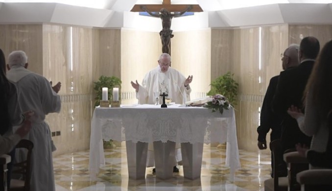 W południe w Kurii Generalnej jezuitów odprawiono Mszę św. a Franciszek przybył na obiad.