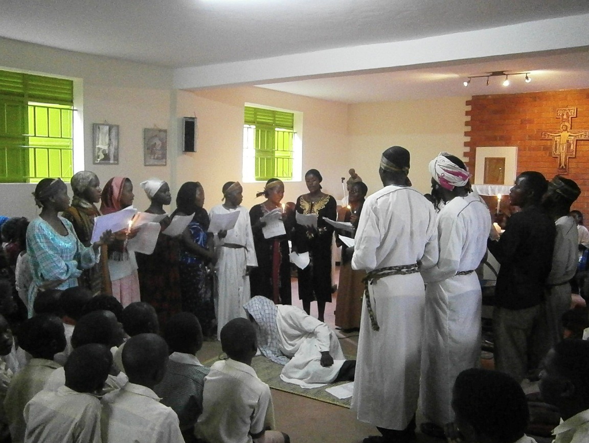 Pięknym zwyczajem w czasie liturgii jest procesja z Biblią, która rozpoczyna Liturgię Słowa. Pismo Święte zostało owinięte w duże liście bananowca i przywiezione przez kobietę na rowerze w asyście dwóch innych kobiet. Była taka możliwość, bo spotkanie odbywało się na placu, gdzie w przyszłości stanie kościół. Przypominało to żywo scenę wniesienia Arki Przymierza do świątyni Jerozolimskiej przez króla Dawida. Nie zabrakło tańców dziękczynnych.