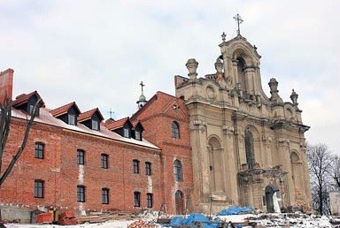 We wczesnym Średniowieczu na wzgórzu znajdował się chrześcijański cmentarz. Kościół i klasztor pochodzą z pierwszej połowy XVII w., ale niewiele z nich zostało, bo kompleks ten był niszczony podczas wojen kozackich i w czasach późniejszych. Obecny klasztor i kościół to budowle barokowe osiemnastowieczne.
