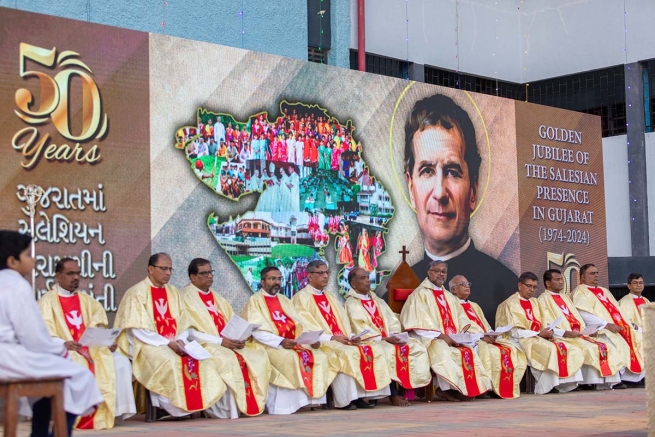 Minęło 50 lat, odkąd pierwsi synowie Księdza Bosko postawili stopę w tej krainie kolorów i kultury, jaką jest stan Gujarat (Gudżarat), gdzie rozwój społeczny, kulturalny i duchowy ludzi, wśród których pracowali, jawi się jako świadectwo ich gorliwości i miłości do Księdza Bosko i bliźniego. Aby okazać wdzięcznośc Bogu za to wszystko, 65 salezjanów z inspektorii Indii-Mumbaju pw. Franciszka Ksawerego (INB), wraz z księżmi diecezjalnymi, siostrami zakonnymi, dobroczyńcami, świeckimi współpracownikami, parafianami, młodzieżą i dziećmi, zgromadzili się w sobotę 7 grudnia w salezjańskim dziele “Don Bosco Makarpura” w Vadodara.
