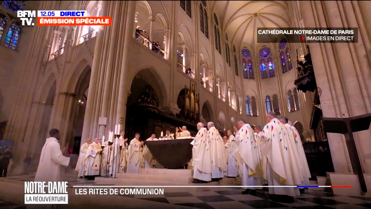 Radość z powodu ponownego otwarcia katedry Notre-Dame w Paryżu stała się okazją do świętowania na całym świecie. Arcybiskup Paryża, Laurent Ulrich, dzierżąc pastorał wyrzeźbiony ze spalonej belki katedry, trzykrotnie zapukał nim w drzwi Notre-Dame, symbolicznie wprowadzając zgromadzonych do świątyni.