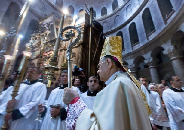 W poranek wielkanocny uroczystej Eucharystii przy pustym grobie Jezusa przewodniczył łaciński patriarcha Jerozolimy Fouad Twal.