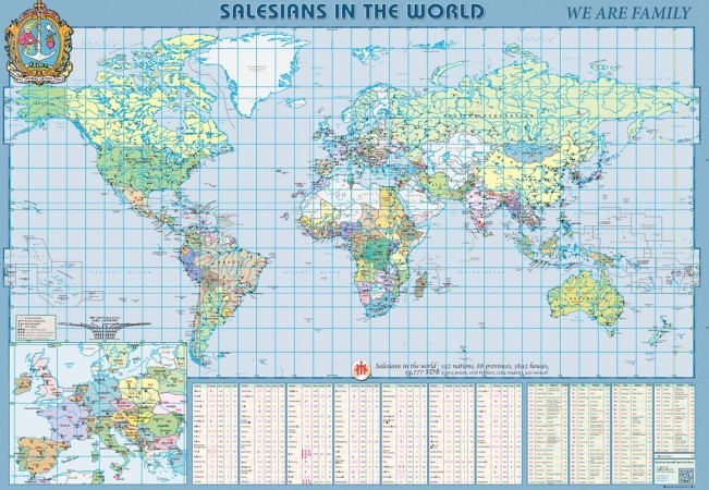 Mapa salezjanów na świecie jest dostępna w sieci w trzech formatach: (128×91 cm, 256×182 cm, 350×248 cm) i w dwóch różnych wersjach: Euro-centrycznej i Pacyfiko-centrycznej.
