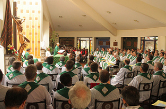 Po trzech kwadransach osobistej modlitwy i refleksji spotkaliśmy się następnie w grupach językowych, by dzielić się naszym doświadczeniem wspólnoty. Z kolei, już na sesji plenarnej, kontynuowaliśmy ten temat kolejno skupiając się na sprawach pomagających i przeszkadzających wspólnocie. Był również czas na zgłaszanie konkretnych sugestii pod rozwagę o. Nicolása i jego asystentów. Obrady podsumował o. Generał, a dzień zakończyła Eucharystia w grupach językowych.