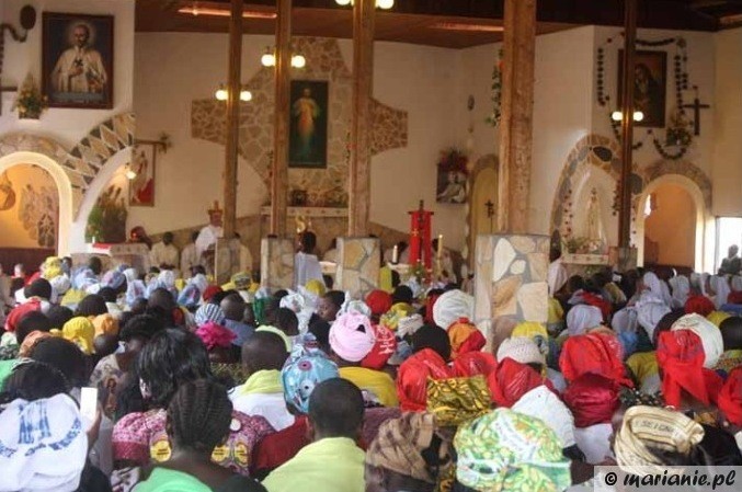 Choć było to święto „zwyczajne”, przyciągneło jednak największą liczbę pielgrzymów. Tradycyjne trzy pielgrzymki piesze przyprowadziły już w sobotę 14 kwietnia do sanktuarium ponad 700 wiernych, a w samo święto w niedzielę kościół (i zbudowany na tę okazję hangar) były przepełnione wiernymi. Przybyli też liczni pielgrzymi z innych diecezji i miast Kamerunu, zwłaszcza z tych miejsc, gdzie byliśmy z naszymi animatorami, wygłaszając katechezy i zakładając grupy modlitewne w duchowości miłosierdzia. My, marianie, byliśmy wszyscy obecni. Rektor seminarium ks. Grzegorz Myłek MIC przywiózł dwóch naszych diakonów i seminarzystów, którzy nie tylko uczestniczyli w pieszej pielgrzymce, ale pomagali zorganizować święto. Od tygodnia był także obecny ks. Krzysztof Pazio MIC, przełożony wikariatu kameruńskiego, podejmując wiele prac przygotowawczych.