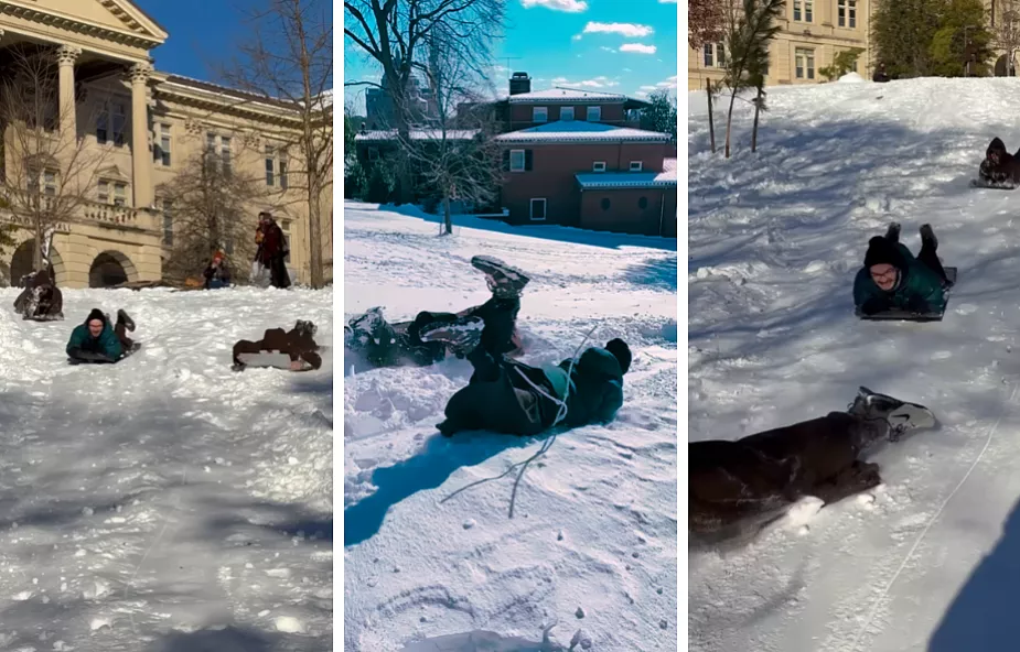 Kapucyni z Waszyngtonu opublikowali na Instagramie wideo, na którym zjeżdżają na kartonach po ośnieżonym stoku, bawiąc się jak dzieci.