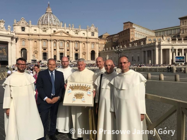 Korony, które zostaną włożone na skronie Maryi i Jezusa w Amerykańskiej Częstochowie, zostały pobłogosławione 12 czerwca 2019 r. przez papieża Franciszka w czasie audiencji generalnej, na Placu św. Piotra na Watykanie.