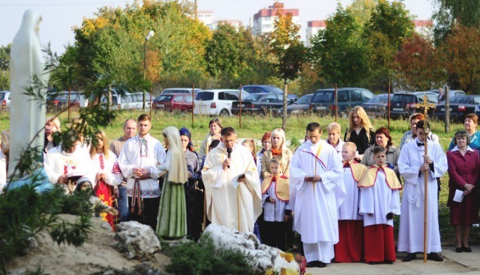 Następnego dnia, w niedzielę 2 października Ojciec Generał przewodniczył uroczystości odpustowej ku czci św. Michała Archanioła w sąsiedniej parafii Gatowo, gdzie od 2004 roku posługę duszpasterską pełnią michalici. Przed Mszą św. wszyscy zgromadzili się na placu przed Centrum Pastoralnym, wokół figur MatkiBożej Fatimskiej i dzieci fatimskich. Ten monument powstał z ofiar parafian i michalitów, by uczcić 100. rocznicę objawień fatimskich, jaka przypada w 2017 roku. Trójka dzieci z parafii, ubrana w stroje fatimskich pastuszków, przewodniczyłaodmawianiu chwalebnej części różańca, po czym Ojciec Generał dokonał poświęcenia figur, zachęcając, by widok rozmodlonych małychwizjonerów był przykładem pobożności dla współczesnych dzieci. Do Centrum codziennie przychodzi spora gromadka dzieci, równieżprawosławnych. Niestety, wielu z nich nie potrafi nawet wykonać znaku krzyża.