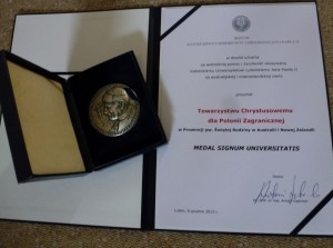 Pobyt Rektora KUL-u w Australii był także okazją do wyrażenia szczególnej wdzięczności polskim duszpasterzom. Podczas Mszy św. w Keysborough, sprawowanej w Boże Narodzenie, przekazał on na ręce ks. Prowincjała medal „Signum Universitatis”. Medal ten został przyznany księżom chrystusowcom pracującym na terenie Australii i Nowej Zelandii, jako wyraz uznania za wsparcie Katolickiego Uniwersytetu Lubelskiego Jana Pawła II.