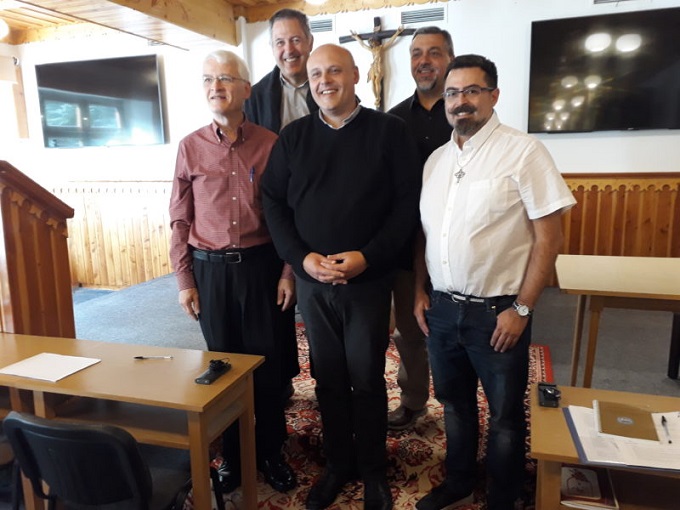 Od lewej stoją: Angelo Anthony CPPS (Wice-Moderator Generalny i I Radny); Alois Schlachter CPPS (IV Radny); Emanuele Lupi CPPS (Moderator Generalny); Augusto Menichelli CPPS (II Radny); Juan Acuña CPPS (III Radny)
