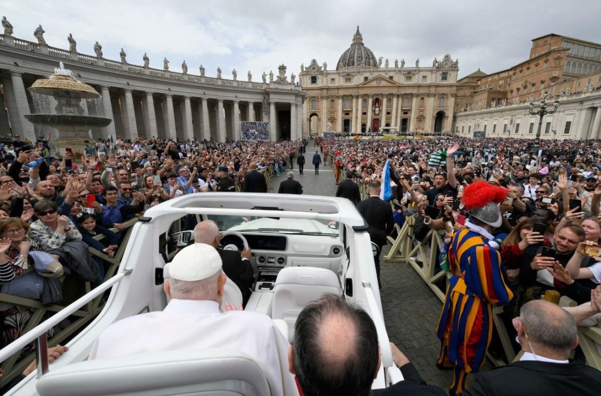 Niedzielnego poranka – po udzieleniu błogosławieństwa Urbi et Orbi z balkonu w środku fasady Bazyliki Watykańskiej, gdy liczba wiernych wzrosła z 35 do 50 tysięcy, Papież postanowił sprawić wszystkim ostatnią, znaczącą niespodziankę: przejechał przez Plac św. Piotra w papamobile. Nie obyło się bez pewnych obaw: „Myślisz, że dam radę?”, zapytał Strappettiego, który go uspokoił. I tak doszło do „uścisku” z rzeszą wiernych, a szczególnie z dziećmi – był to pierwszy przejazd od czasu wypisania z Kliniki Gemelli i zarazem ostatni w jego życiu.
