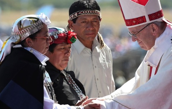Dziękuję Bogu, że pozwolił mi na odwiedzenie tego pięknego zakątka naszego kontynentu – Araukaríi: ziemi pobłogosławionej przez Stwórcę płodnością wielkich zielonych pól, lasów pełnych imponujących araukarii – opiewa je piąta oda Gabrieli Mistral ku czci tej chilijskiej ziemi (1) – jej majestatyczne ośnieżone wulkany, jeziora i rzeki pełne życia. Ten krajobraz wznosi nas ku Bogu i łatwo dostrzec Jego rękę w każdym stworzeniu. Wiele pokoleń mężczyzn i kobiet umiłowały i kochają tę ziemię z zazdrosną wdzięcznością. Chciałbym się zatrzymać i pozdrowić w sposób szczególny członków ludu Mapuche, a także innych ludów tubylczych, którzy mieszkają na tych ziemiach południowych: Rapanui (Wyspa Wielkanocna), Ajmara, Keczua i Atakamów, a także wiele innych.