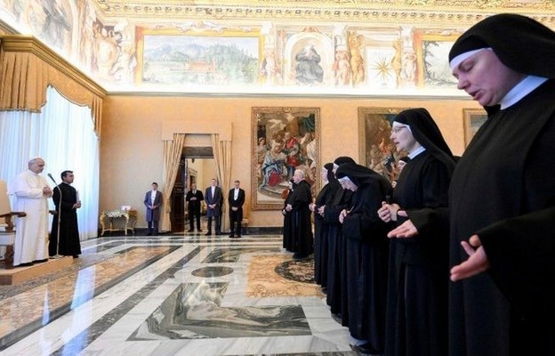 Papież poprosił zatem augustianki, aby z niepodzielną miłością oddawały się swemu powołaniu, z entuzjazmem przyjmowały realia życia w klasztorze: liturgię, wspólną i osobistą modlitwę, adorację, medytację Słowa Bożego, wzajemną pomoc w życiu wspólnotowym. „Wam da to pokój i pociechę, a tym którzy pukają do drzwi waszych klasztorów, przesłanie nadziei bardziej wymowne niż tysiąc słów” – dodał Ojciec Święty.