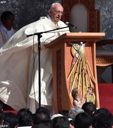 W tych dniach mogłem zobaczyć wiele matek ze swymi dziećmi na plecach, tak jak to robi tutaj wiele z was, niosących na sobie życie, przyszłość swego narodu, niosących swoje powody radości, swoje nadzieje, niosących błogosławieństwo ziemi w jej owocach, niosących pracę wykonaną swoimi rękami. Rękami, które wyrzeźbiły teraźniejszość i utkają oczekiwania dnia jutrzejszego. Ale dźwigających też na swych barkach rozczarowania, smutki i gorycze, niesprawiedliwość, która wydaje się nie do powstrzymania i blizny z powodu sprawiedliwości niespełnionej. Dźwigacie na sobie radość i ból ziemi. Nosicie na sobie pamięć swego narodu. Narody bowiem mają pamięć – pamięć, która przechodzi z pokolenia na pokolenie, pamięć w drodze.