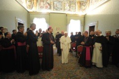 Papież podjął też inny temat obrad Międzynarodowej Komisji Teologicznej, dotyczący katolickiej nauki społecznej. „Zaangażowanie społeczne Kościoła nie jest czymś tylko ludzkim ani nie sprowadza się do teorii społecznej – kontynuował Ojciec Święty. – Przekształcenie społeczeństwa, jakiego chrześcijanie dokonali w ciągu wieków, jest odpowiedzią na przyjście na świat Syna Bożego. Blask tej Prawdy i Miłości oświeca każdą kulturę i każde społeczeństwo. Św. Jan stwierdza: «Po tym poznaliśmy miłość, że On oddał za nas życie swoje. My także winniśmy oddać życie za braci» (1 J 3, 16). Uczniowie Chrystusa Odkupiciela wiedzą, że bez troski o drugiego, przebaczenia, miłości także do nieprzyjaciół żadna ludzka wspólnota nie może żyć w pokoju. Zaczyna się to od pierwszej, podstawowej społeczności, jaką jest rodzina. W koniecznej współpracy dla dobra wspólnego również z tymi, którzy nie podzielają naszej wiary, musimy ukazywać prawdziwe, głębokie motywy naszego zaangażowania społecznego. Tak samo oczekujemy od innych okazania swych motywacji, by we współpracy nie było niejasności. Kto zrozumie podstawy chrześcijańskich działań społecznych, będzie mógł zostać w ten sposób pobudzony do wzięcia pod uwagę samej wiary w Jezusa Chrystusa”.