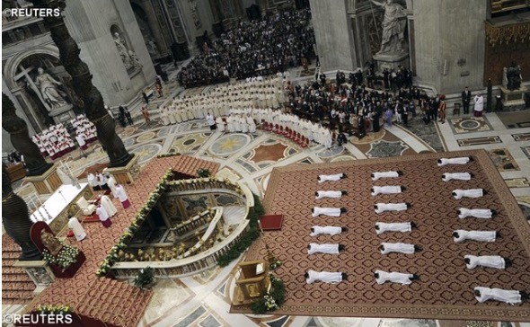 13 diakonów, którzy przystąpili do sakramentu kapłaństwa, pochodziło z trzech rzymskich seminariów duchownych: papieskiego na Lateranie, Kolegium Redemptoris Mater oraz seminarium Madonna del Divino Amore. Mają oni mniej niż 40 lat i pracować będą na terenie diecezji rzymskiej. Pozostałych pięciu to zakonnicy, a jeden należy do Kościoła syromalabarskiego w Indiach.