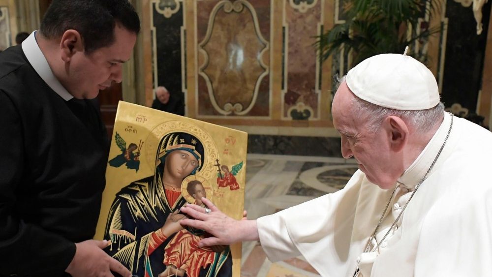 Drodzy bracia, powierzam wasze Zgromadzenie opiece Matki Nieustającej Pomocy, aby zawsze wam towarzyszyła, tak jak towarzyszyła swemu Synowi u stóp krzyża (por. J 19, 25). Nie jesteście sami, bądźcie synami kochanymi i chronionymi. Proszę Pana, abyście byli wierni i wytrwali w swojej misji, nie zapominając nigdy o najbiedniejszych i najbardziej opuszczonych, którym służycie i którym głosicie Dobrą Nowinę o Odkupieniu. Serdecznie błogosławię wam, siostrom i wiernym świeckim, którzy dzielą wasz charyzmat. I proszę was o modlitwę za mnie. Dziękuję!