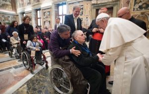 „Osoby chore są cennymi członkami Kościoła”. Podkreślił to Papież, przyjmując w Watykanie uczestników spotkania zorganizowanego przez komisję włoskiego episkopatu do spraw charytatywnych i służby zdrowia z okazji 25-lecia ustanowienia Światowego Dnia Chorego i 20-lecia włoskiego Krajowego Biura Duszpasterstwa Służby Zdrowia. Ojciec Święty zwrócił uwagę, że minione od tego czasu lata znamionowały wielkie przemiany społeczne i kulturowe. W dzisiejszej sytuacji służby zdrowia są blaski i cienie.