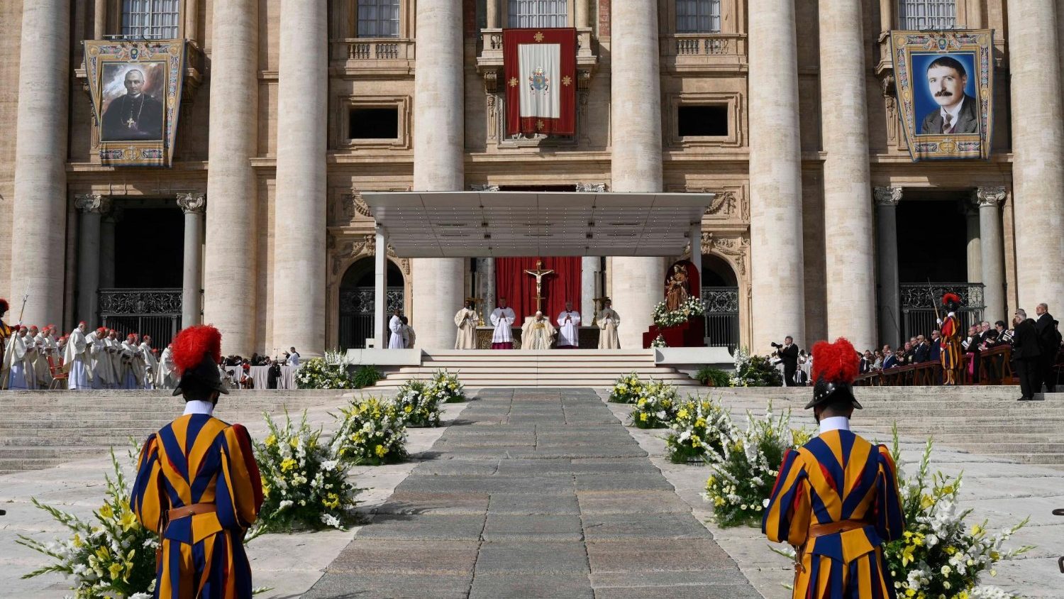 Prośbę o beatyfikację bp Giovanniego Battisty Scalabriniego i Artemide Zattiego wypowiedział kard. Marcello Semeraro, prefekt Dykasterii ds. Sprawy Kanonizacyjnych, w towarzystwie postulatorów. Następnie, przedstawił krótkie życiorysy nowych świętych. W odpowiedzi Franciszek wygłosił formułę kanonizacji. Na frontonie bazyliki odsłonięto portrety nowych świętych, po czym przed ołtarz przyniesiono ich relikwie.