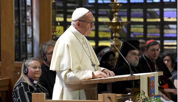 W siedzibie tej organizacji papież podkreślił: „Chciałem tu przyjechać jako pielgrzym w poszukiwaniu jedności i pokoju”. Wyraził przekonanie, że droga ekumeniczna nie jest „strategią mającą na celu uwydatnić znaczenie” chrześcijan, lecz „aktem posłuszeństwa wobec Pana i miłości do świata”.