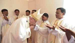 Przez chrzest będziecie włączać nowych wiernych do ludu Bożego, w sakramencie pokuty odpuszczać grzechy w imieniu Chrystusa i Kościoła. Będziecie umacniać chorych, namaszczając ich świętym olejem. Będziecie sprawować święte obrzędy i w różnych porach dnia składać Bogu uwielbienia, dziękczynienia i prośby nie tylko za lud Boży, lecz także za cały świat.