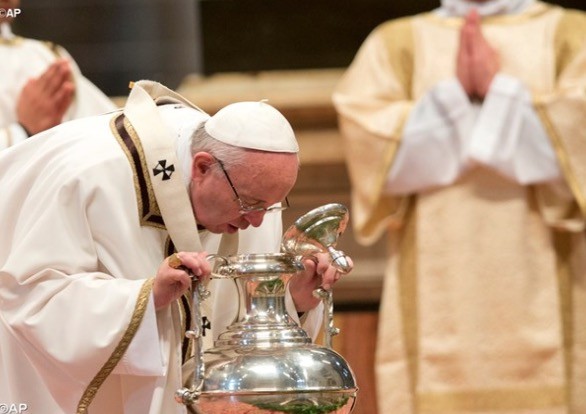 Z kardynałami, biskupami i kapłanami, którzy wypełnili w wielkoczwartkowy poranek Bazylikę Watykańską, Papież odprawił Mszę Krzyżma. Podczas liturgii poświęcił oleje, które zostaną rozprowadzone do wszystkich parafii diecezji rzymskiej. Obecni na Eucharystii księża odnowili przyrzeczenia kapłańskie.