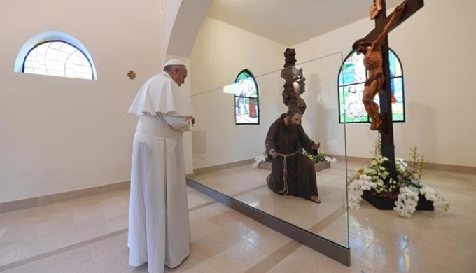 Wczoraj odwiedziłem Pietrelcinę i San Giovanni Rotondo. Pozdrawiam serdecznie i dziękuję wspólnotom diecezji Benewentu i Manfredonii, biskupom – Accrocca i Castoro – osobom konsekrowanym, wiernym, przedstawicielom władz. Dziękuję wam za serdeczne powitanie i wszystkich niosę w swym sercu, ale szczególnie chorych Domu Ulgi w Cierpieniu, osoby starsze i młodych. Dziękuję, którzy przygotowali tę niezapomnianą wizytę. Niech Ojciec Pio błogosławi wszystkich.