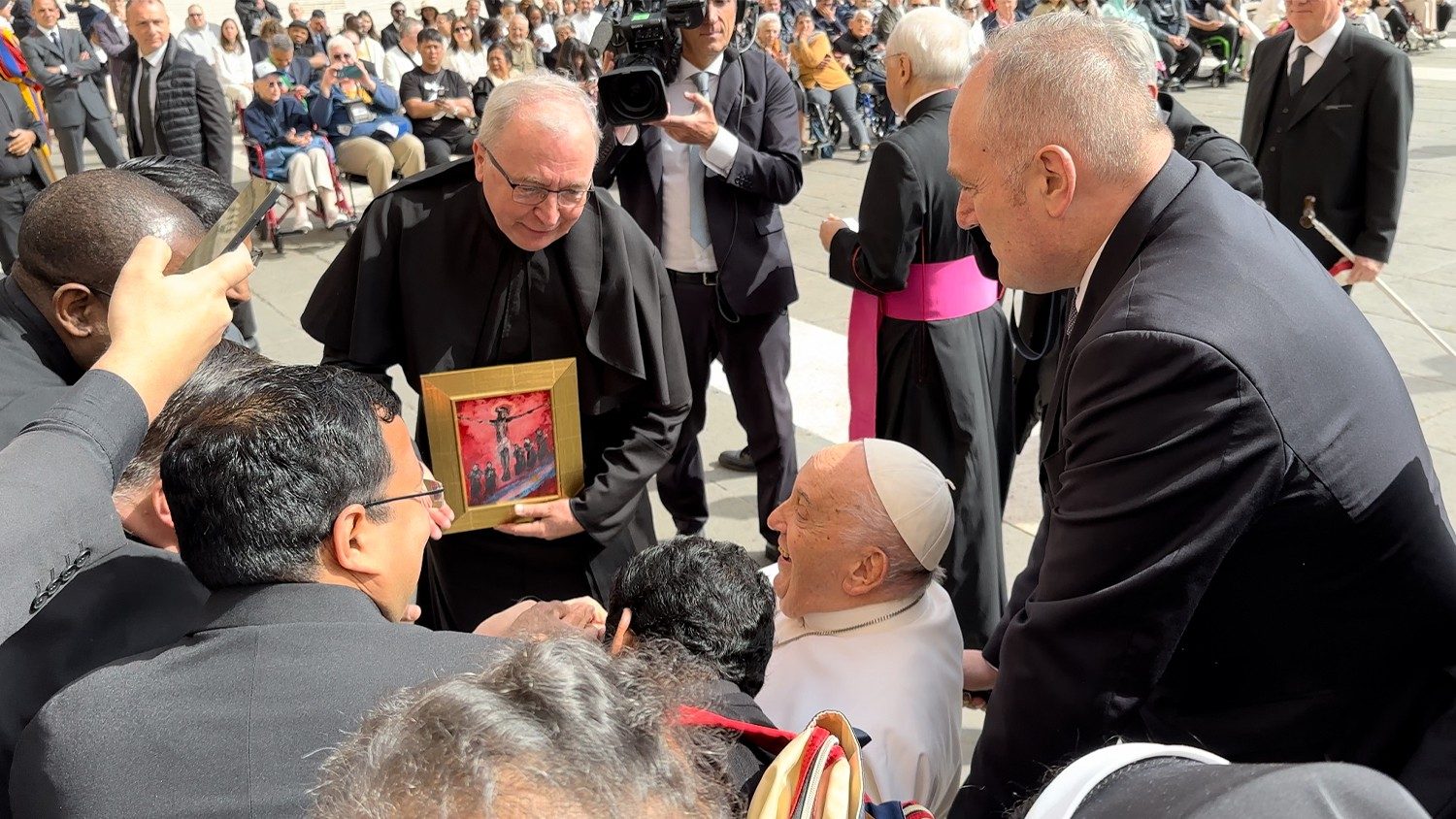 Uczestnicy Kongresu Doradczego Wyższych Przełożonych Stowarzyszenia Apostolstwa Katolickiego, który odbywa się w Rzymie w dniach 8-12.04.2024 wzięli udział w środowej audiencji z Papieżem Franciszkiem. Pallotyński Przełożony Generalny, ks. Zenon Hanas SAC przekazał Ojcu Świętemu obraz pięciu pallotyńskich męczenników z Buenos Aires, którzy zginęli w 1976 roku.