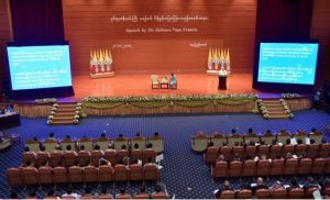 Ojciec Święty wyraził uznanie dla wysiłków, jakie podejmuje w tym celu birmański rząd, zwłaszcza przez konferencję pokojową w Panglong z udziałem przedstawicieli różnych ugrupowań. Papież przypomniał, że sprawiedliwość, która jest wolą przyznania każdemu tego, co mu się należy, stanowi podstawę prawdziwego i trwałego pokoju. Świadomość tego, potwierdzona tragicznym doświadczeniem dwóch wojen światowych, doprowadziła do utworzenia Organizacji Narodów Zjednoczonych i Powszechnej Deklaracji Praw Człowieka.