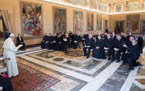 „O przeszłości należy pamiętać z wdzięcznością, z pasją przeżywać czas obecny, a przyszłość przyjmować z nadzieją. Wdzięczna pamięć o przeszłości: nie archeologia, bo charyzmat zawsze jest źródłem wody żywej, nie butelką wody destylowanej. Pasja, aby utrzymywać zawsze żywą i młodą pierwszą miłość, którą jest Jezus. Nadzieja: wiedząc, że Jezus jest z nami i kieruje naszymi krokami tak, jak kierował krokami naszych założycieli” – stwierdził Ojciec Święty.
